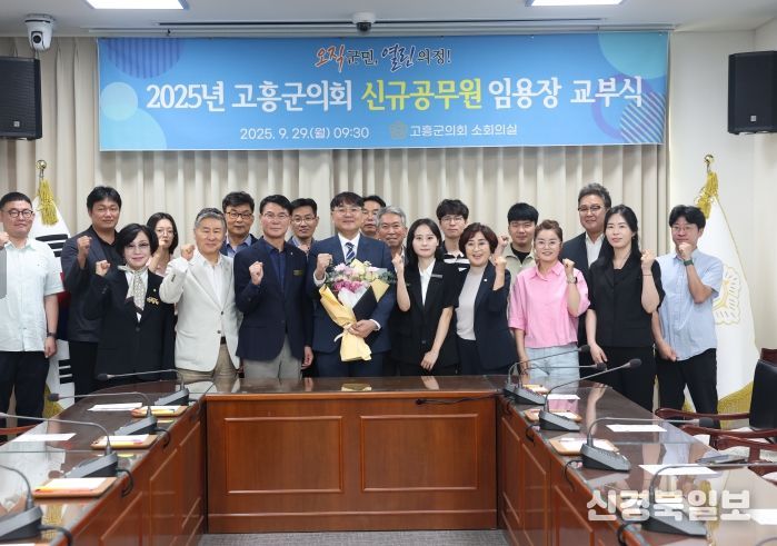 [ 신경북일보 ] 고흥군의회는 소회의실에서 2025년 9월 29일 자 인사발령에 따른 신규 공무원 임용장 교부식을 가졌다.