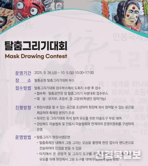 [ 신경북일보 ] 2025 안동국제탈춤페스티벌에서는 축제 기간 동안 세계탈춤그리기대회가 운영된다.