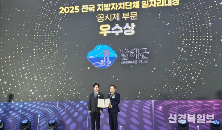 [ 신경북일보 ] 남해군이 9월 30일 청주 오스코에서 열린 고용노동부 주관 ‘2025년 전국 지방자치단체 일자리 대상’ 시상식에서 공시제 분야 우수상을 수상했다. 이번 수상은 2016년 우수상 이후 9년 만에 거둔 성과다.