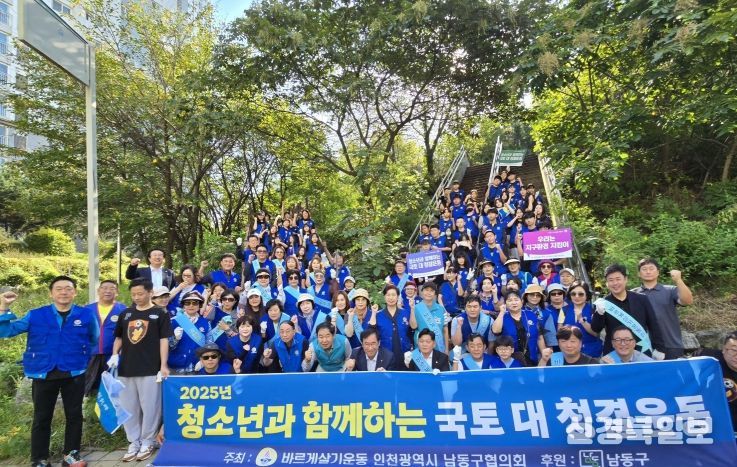 [ 신경북일보 ] 인천시 남동구 바르게살기운동 남동구협의회는 100여 명의 회원 및 주니어클럽 봉사단체 초․중․고 학생들과 구월1동 아시아드 근린공원 및 인근 상가 주변에서 ‘국토대청결운동’을 실시했다고 1일 밝혔다.
