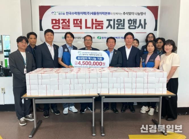 한국수력원자력(주)새울원자력본부는 이날 울주군 남부지역 어르신들을 위해 명절떡 280명분을 지원하여 지역에 나눔을 실천했다.