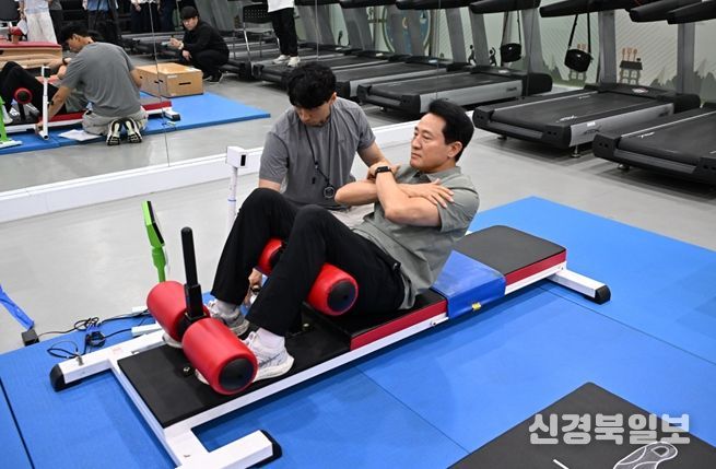 [ 신경북일보 ] 오세훈 서울시장이 10월 1일 오후 서울시청 체력단련실에서 지난 9월 10일 발표한 '건강도시 서울 종합계획-더 건강한 서울 9988'의 주요 사업인 ‘체력인증센터’ 운영을 앞두고 체력측정 장비를 점검하고 시범 측정을 진행했다.