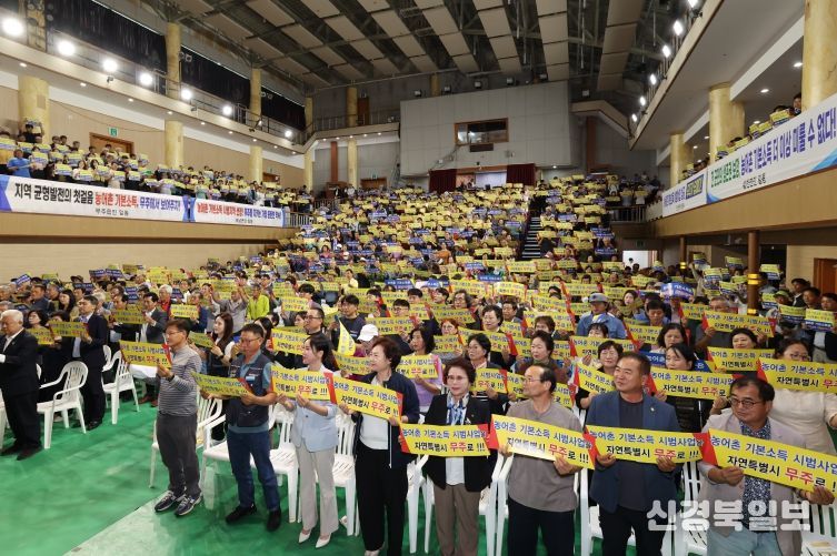 [ 신경북일보 ] 무주군이 지난 1일 무주예체문화관 대강당에서 농어촌 기본소득 시범사업 선정을 촉구하는 범군민 결의대회를 개최했다.