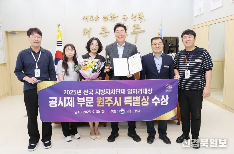 [ 신경북일보 ] 원주시는 지난 30일 청주 오스코에서 열린 고용노동부 주관 ‘2025 전국 지방자치단체 일자리대상’ 공시제 부문에서 특별상을 수상했다. 지난해 우수상에 이어 2년 연속 장관상을 받으며, 일자리창출 분야에서 전국적으로 성과를 인정받았다.