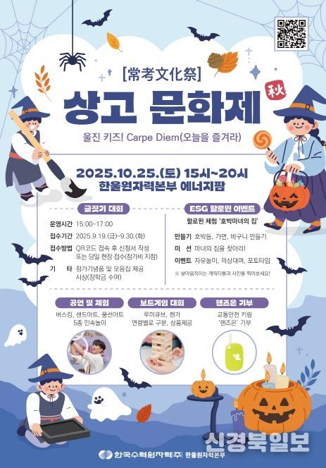 [ 신경북일보 ] 한국수력원자력(주) 한울원자력본부)는 10월 25일 15시 한울에너지팜에서 제2회 ‘한울 상고문화제 가을(秋)편’ '울진 키즈! Carpe Diem(오늘을 즐겨라)'를 개최한다.