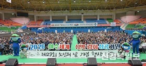 특히 2026여수세계섬박람회 성공개최를 응원하는 퍼포먼스가 진행돼 행사장에 모인 어르신과 내빈이 함께 섬박람회 성공을 기원하며 힘찬 구호를 외쳤다.