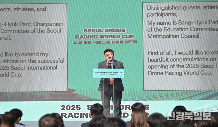 [ 신경북일보 ] 서울특별시의회 박상혁 교육위원장(서초 제1선거구, 국민의힘)은 10월 1일 광나루 한강드론공원에서 열린 '2025 서울 국제 드론 레이싱 월드컵'개회식에 참석하여 대회 개회를 축하하고, 참가 선수단과 관계자들을 격려했다.