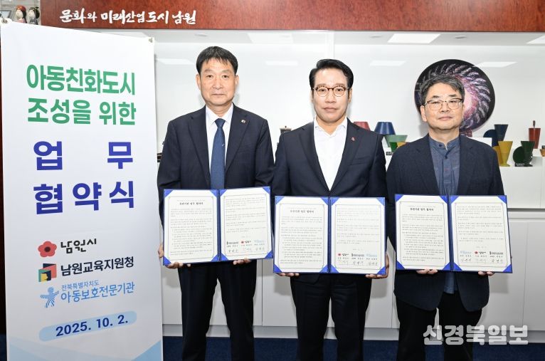 [ 신경북일보 ] 남원시는 지난 2일 남원교육지원청, 전북동부아동보호전문기관과 함께 아동친화도시 조성 및 아동 권리 증진을 위한 업무협약식을 체결했다.