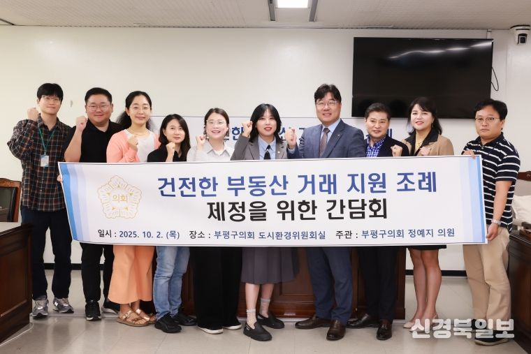 [ 신경북일보 ] 인천 부평구의회 정예지 의원(더불어민주당 비례)은 지난 10월 2일 부평구의회 도시환경위원회실에서 '인천광역시부평구 건전한 부동산 거래 지원 조례'제정을 위한 간담회를 개최했다.