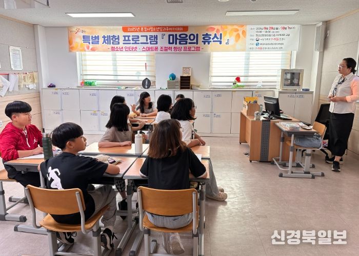 [ 신경북일보 ] 문경시청소년방과후아카데미는 지난 9월29일과 10월 1일 이틀간 문경시청소년상담복지센터와 연계해 청소년 인터넷·스마트폰 조절력 향상 프로그램 『마음의 휴식』스마트 교실을 운영했다.