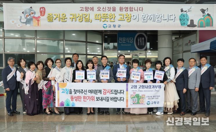 [ 신경북일보 ] 고창군이 추석 연휴 첫날인 3일 (주)푸디스트가 운영하는 고창고인돌휴게소(하행)에서 귀성객 맞이 홍보활동을 펼쳤다.