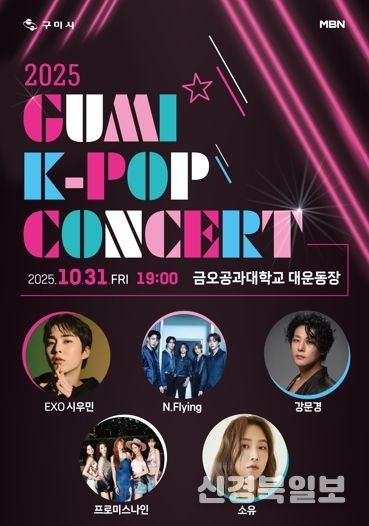 [ 신경북일보 ] 구미시는 오는 10월 31일 오후 7시, 국립금오공과대학교 대운동장에서 '2025 구미 K-POP 콘서트'를 개최한다. 이번 공연은 전 세대가 함께 즐길 수 있는 야외 콘서트로 마련됐다. 아이돌·발라드·밴드·트로트까지 아우르는 폭넓은 장르의 최정상급 아티스트들이 출연해 가을밤 구미를 화려하게 수놓는다.