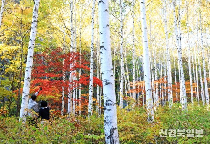 빼곡하게 수놓인 나무의 하얀 수피들 사이로 알록달록 피어오른 단풍은 늘상 봐오던 단풍나무들과는 색다른 감동을 선사할 것이다.