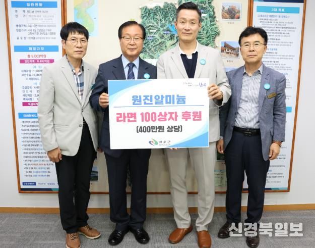 [ 신경북일보 ] ㈜원진알미늄이 완주군에 라면 100상자(환가액 400만 원 상당)를 전달했다.