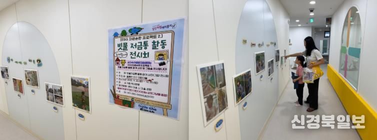 센터는 그림과 사진 전시를 통해 영유아와 보호자에게 환경보호의 중요성을 자연스럽게 알리고 있다.