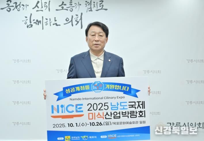 [ 신경북일보 ] 강릉시의회 최익순 의장이 ‘2025 남도국제미식산업박람회’의 성공 개최를 기원하는 릴레이 응원 챌린지에 동참했다.