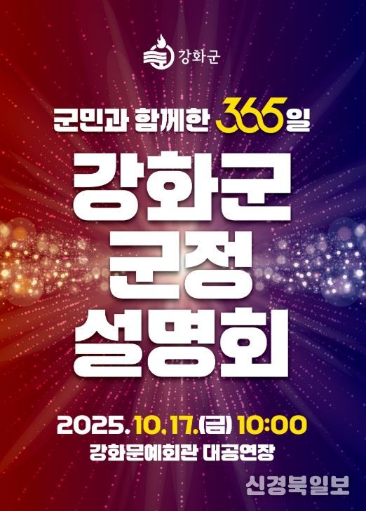 [ 신경북일보 ] 강화군은 오는 10월 17일 오전 10시 강화문예회관에서 “군민과 함께한 365일, 강화군 군정 설명회”를 개최한다.