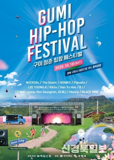 [ 신경북일보 ] 구미시는 오는 10월 18일 동락공원에서 청춘들의 열정과 힙합 음악이 어우러지는 '2025 구미청춘힙합페스티벌'을 개최한다. 이번 공연은 오후 3시 30분부터 밤 10시까지 진행되며, 전석 무료(스탠딩존)로 선착순 입장할 수 있다.