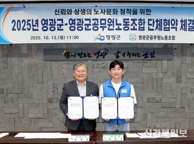 [ 신경북일보 ] 영광군은 지난 10월 13일 군청 2층 소회의실에서 영광군공무원노동조합과 “2025년 단체협약식”을 체결했다.