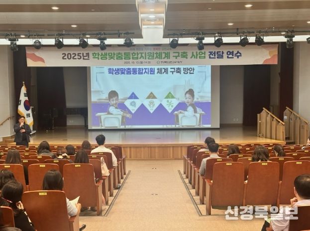 [ 신경북일보 ] 경상북도 김천교육지원청은 10월 13일 월요일, 김천학생문화예술센터 드림마루에서 관내 52개 초‧중‧고등학교 행정실장 및 업무담당자를 대상으로 2025년 학생맞춤통합지원체계 구축을 위한 전달 연수를 개최했다.