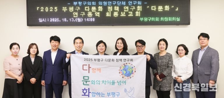 [ 신경북일보 ] 인천 부평구의회 의원연구단체인 '2025 부평구 다문화 정책 연구회 “다함께 문화의 차이를 넘어 화합하는 부평구”(대표의원 허정미)'가 10월 13일 ‘부평구 다문화 특성화 사업 개발 연구용역’ 최종보고회를 가졌다.