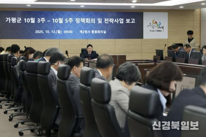 [ 신경북일보 ] 가평군은 13일 2청사 통합회의실에서 ‘2025년 50대 전략사업 3분기 보고회’를 열고 주요 현안사업 추진상황을 점검하며 군정 운영 방향을 공유했다.