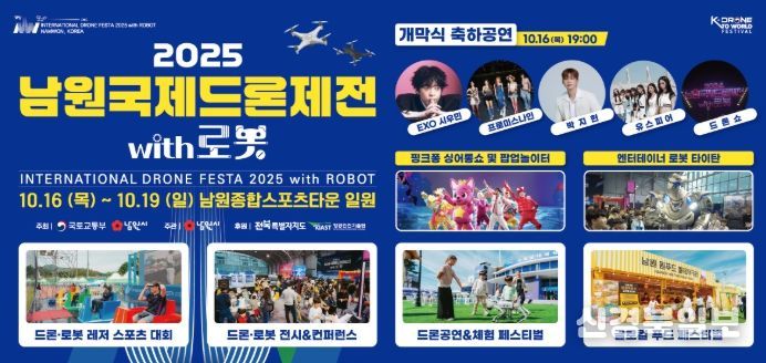 [ 신경북일보 ] 국내 최대 규모의 융복합 드론 축제인 ‘2025 남원국제드론제전 with 로봇’이 오는 10월 16일부터 19일까지 4일간 남원종합스포츠타운 일원에서 성대하게 개최된다.