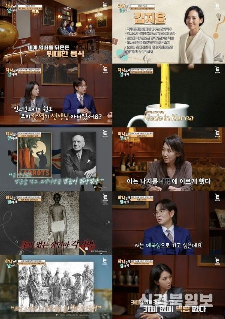 13일 방송된 티캐스트 E채널 '하나부터 열까지'에서는 '세계 역사를 뒤흔든 위대한 음식'을 주제로 '자양강장 MC' 장성규ㆍ강지영과 '월드클래스 정치학자' 김지윤 박사가 불꽃 튀는 토론과 함께 흥미진진한 랭킹 배틀을 펼쳤다.