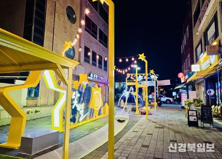 [ 신경북일보 ] 문경시는 점촌원도심상권 130m 구간에 노란색 간판과 어닝을 새로 달고, 상징 조형물 13점, 조형벤치 20개를 설치했으며, 은하수 조명 18m와 360여 개의 파티등으로 ‘닻별 테마길’을 화려하게 완공했다.