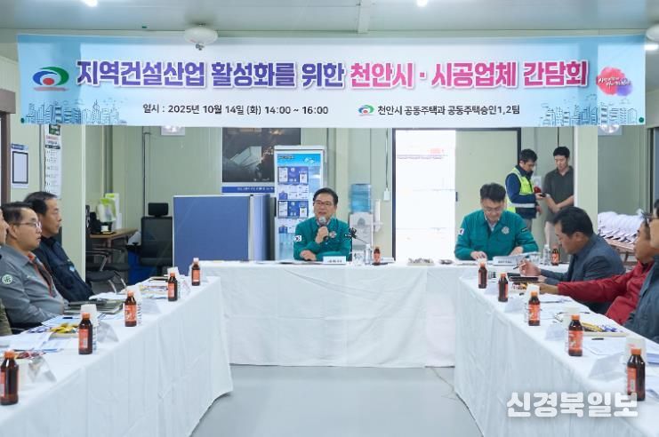 [ 신경북일보 ] 천안시는 14일 공동주택 시공사 현장소장과 간담회를 갖고 건설현장의 안전관리 강화와 지역경제 활성화 방안을 논의했다.
