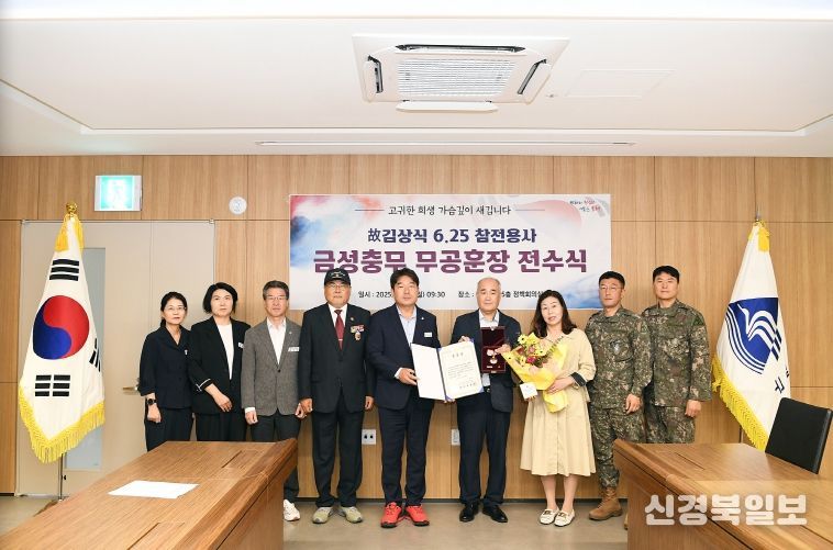 [ 신경북일보 ] 부산 동래구는 지난 13일 6․25전쟁에 참전해 무공을 세운 고(故) 김상식님의 자녀 김형원씨에게 금성충무 무공훈장과 훈장증을 전수했다.