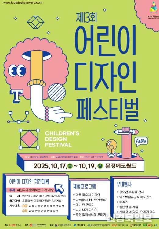 [ 신경북일보 ] 경상북도와 문경시가 주최하고 (사)디자인정책연구원이 주관하는 제13회 대한민국 어린이제품 디자인 공모전 ‘어린이 디자인 페스티벌’이 10월 17일부터 19일까지 사흘간 문경에코월드에서 열린다.