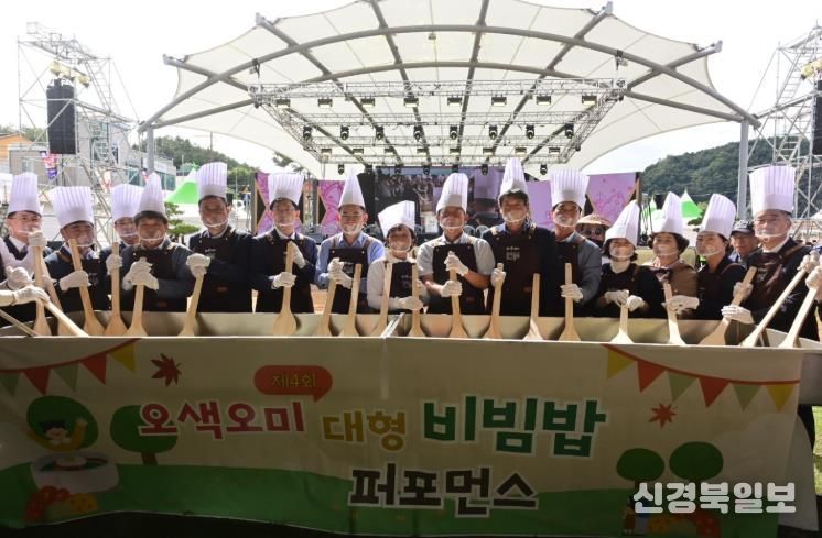 개막 첫날, 청정 봉화의 농산물이 한 그릇에 담긴 ‘오색오미 대형 비빔밥 퍼포먼스’가 축제의 서막을 알렸다.