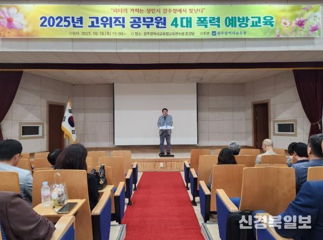 [ 신경북일보 ] 광주시교육청은 16일 교육연수원 중강당에서 5급 이상 공무원을 대상으로 ‘4대 폭력(성희롱·성매매·성폭력·가정폭력) 예방교육’을 실시했다.