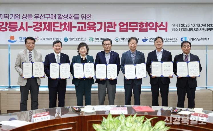 [ 신경북일보 ] 강릉시는 16일 오후 2시 시청 8층 시민사랑방에서 경제단체 및 교육기관과 함께 지역기업 판로 확대와 상생 기반 조성을 위한 ‘지역기업 상품 우선구매 업무협약식’을 개최했다.