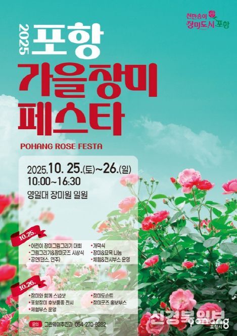 [ 신경북일보 ] 포항시는 오는 25일부터 26일까지 양일간 영일대장미원에서 ‘2025 포항 가을장미페스타’ 행사를 개최한다.