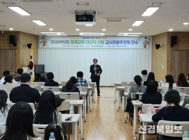 [ 신경북일보 ] 경상북도김천교육지원청은 2025년 10월 20일 김천학생문화예술센터에서 김천 관내 초·중학교 영재업무 담당 교사 42명을 대상으로 '2026학년도 영재교육대상자 선발을 위한 교사관찰추천제 연수'를 실시했다.
