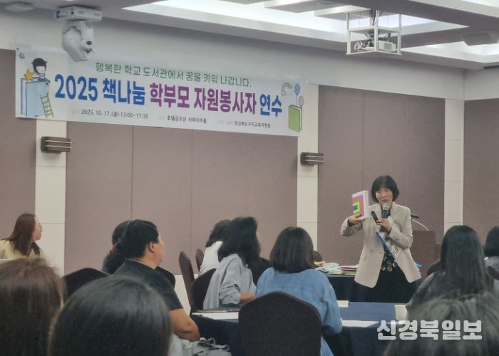[ 신경북일보 ] 경상북도구미교육지원청은 10월 17일 호텔 금오산 별관 1층 사파이어홀에서 구미지역 초・중 학교도서관 학부모자원봉사자 50여 명을 대상으로 책나눔 학부모자원봉사자 역량 강화 연수를 실시했다.