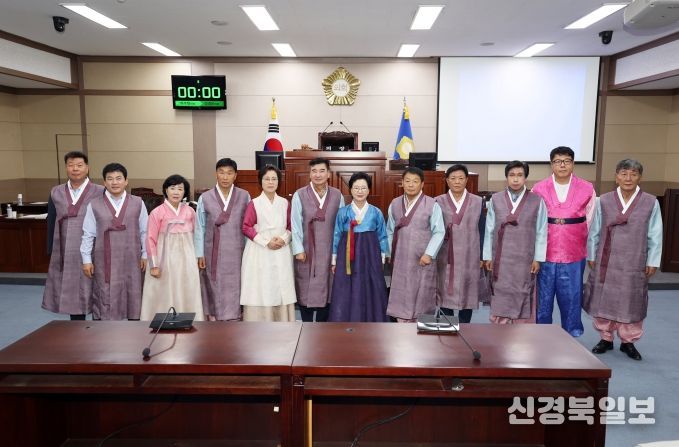 [ 신경북일보 ] 상주시의회는 21일 상주시의회 임시회 제3차 본회의에서 정장 대신 한복을 입은 채 의정활동을 펼쳤다.