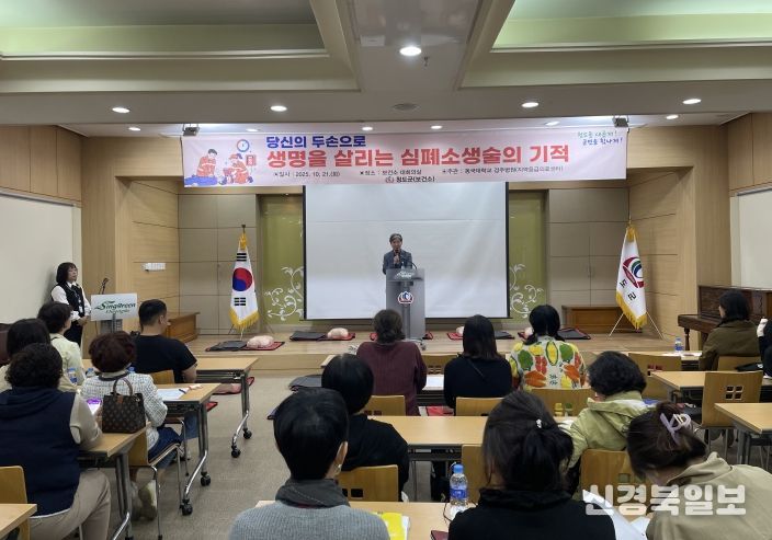이날 교육은 경주소재 동국대학교 경주병원(지역응급의료센터)의 주관으로 진행됐으며, 교육 내용은 심정지 환자 발생 시 대처요령, 성인 대상 심폐소생술(CPR) 실습, 이물질로 인한 기도 폐쇄 시 하임리히 적용방법과실습, 자동심장충격기(AED) 사용법 등으로 이론과 실습교육을 병행해 실시했다.