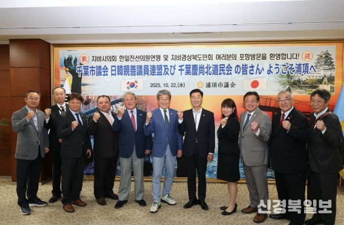 [ 신경북일보 ] 포항시의회은 22일 오전 의장실에서 치바시의회 한일친선의원연맹 소속 의원들과 치바경북도민회 회원들의 예방을 받고 환담을 가졌다.
