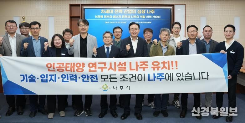 또한 간담회 참석자들은 ‘인공태양 연구시설 나주 유치’를 염원하는 퍼포먼스를 진행하며 정부 공모사업 대응 의지를 함께 다졌다.