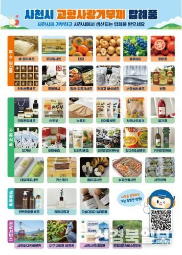 [ 신경북일보 ] 사천시는 오는 11월에 2026년도 고향사랑기부제 답례품과 공급업체를 공개 모집한다고 22일 밝혔다.
