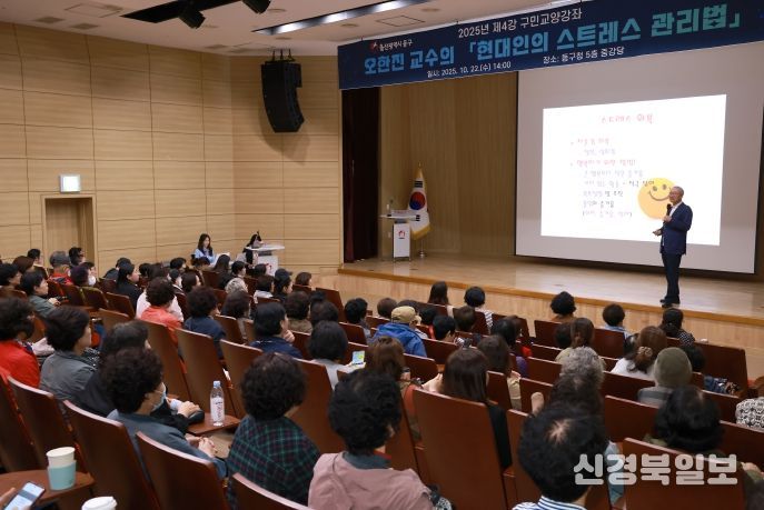 [ 신경북일보 ] 울산 동구는 10월 22일 오후 2시 5층 중강당에서 오한진 교수의 ‘스트레스 관리법’이라는 주제로 강연을 개최했다.
