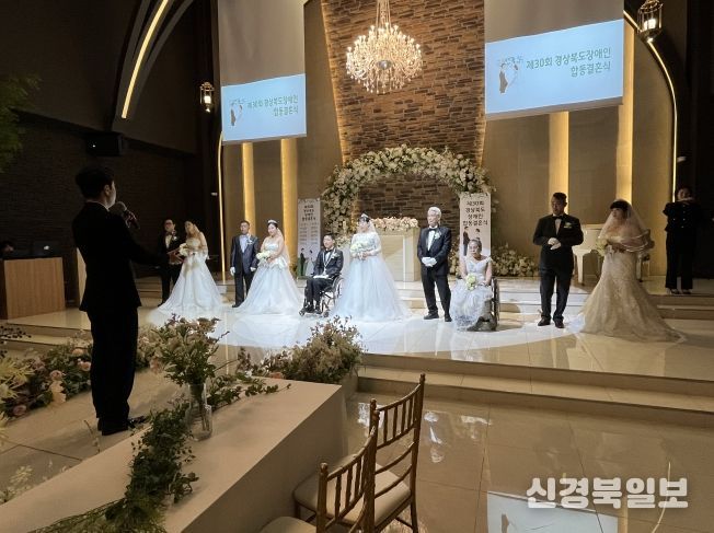 [ 신경북일보 ] 경상북도는 한국장애인재활협회 경북협회 주관으로 22일 경북 안동 두리원웨딩홀에서 신랑·신부 5쌍과 가족, 친지, 내빈 등 120여 명이 참석한 가운데 ‘제30회 경상북도 장애인 합동결혼식’을 성황리에 개최했다.
