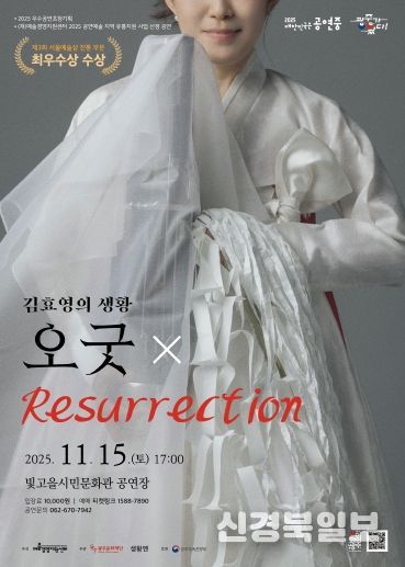 [ 신경북일보 ] 광주문화재단은 2025 우수공연초청기획 마지막 무대로 오는 11월 15일 오후 5시 빛고을시민문화관 2층 공연장에서 ‘생황엔’의 전통 '오굿×Resurrection' 공연을 선보인다.