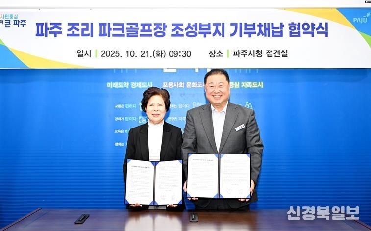 [ 신경북일보 ] 파주시는 지난 21일, 조리 파크골프장 조성 부지 기부채납 협약식을 개최해 파크골프장 조성 사업에 첫발을 내디뎠다.