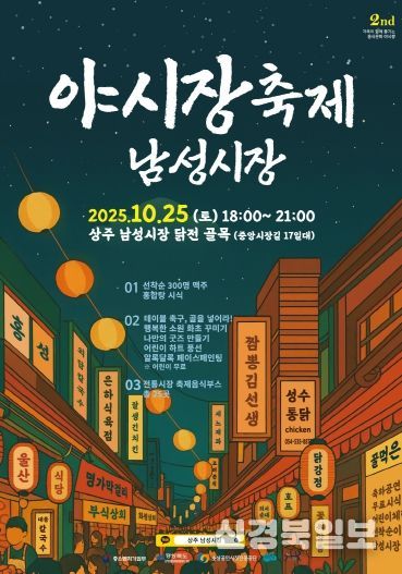 [ 신경북일보 ] 상주시는 다가오는 10월 25일 “상주남성시장 야시장 축제”를 개최한다.