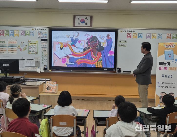 [ 신경북일보 ] 박범인 금산군수는 지난 24일 남일초를 방문해 학생들과 함께 그림책 읽는 시간을 가졌다.