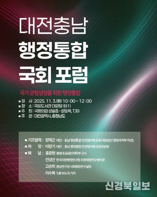 [ 신경북일보 ] ‘대전충남특별시 설치 및 경제과학수도 조성을 위한 특별법’이 국회에 발의된 가운데, 행정통합에 대한 국민 공감대 확산을 위한 공론의 장이 펼쳐졌다.
